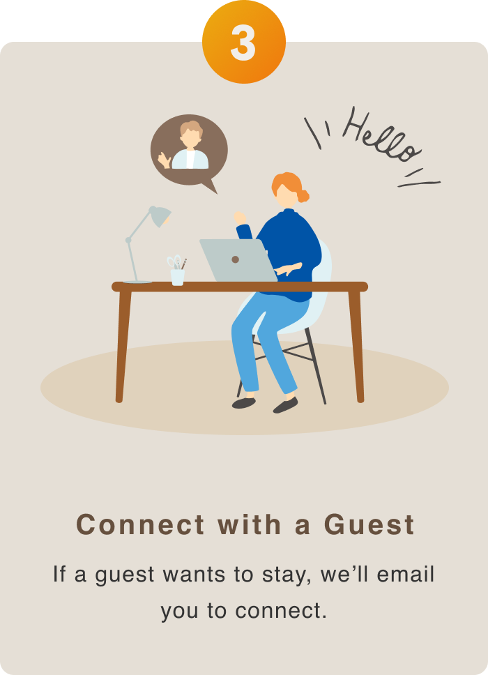 - Offer Accommodation and Meals: Provide each guest with a private room and meals—two on weekdays and three on weekends.